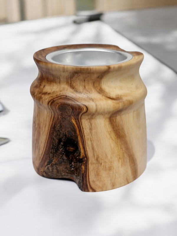 Découvrez ce magnifique bougeoir, fruit d'un travail artisanal exceptionnel. Conçu à partir de bois d'olivier, ce bougeoir apportera une touche d'élégance et de chaleur à votre intérieur. Chaque pièce est unique, façonnée à la main avec soin et passion.