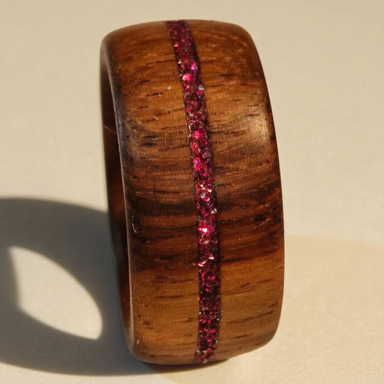 L'Élégance Naturelle : Bague en Bois de Rose (Kosso) et Paillettes