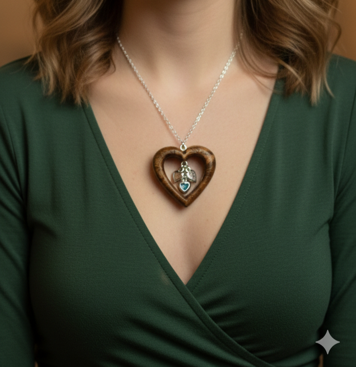 - Le Cœur en Bois de Teck : Élément central de cette pièce, ce cœur a été sculpté avec soin dans du bois de teck véritable. Réputé pour sa résistance et son veinage chaleureux, chaque courbe raconte l'histoire de l'arbre dont il est issu.